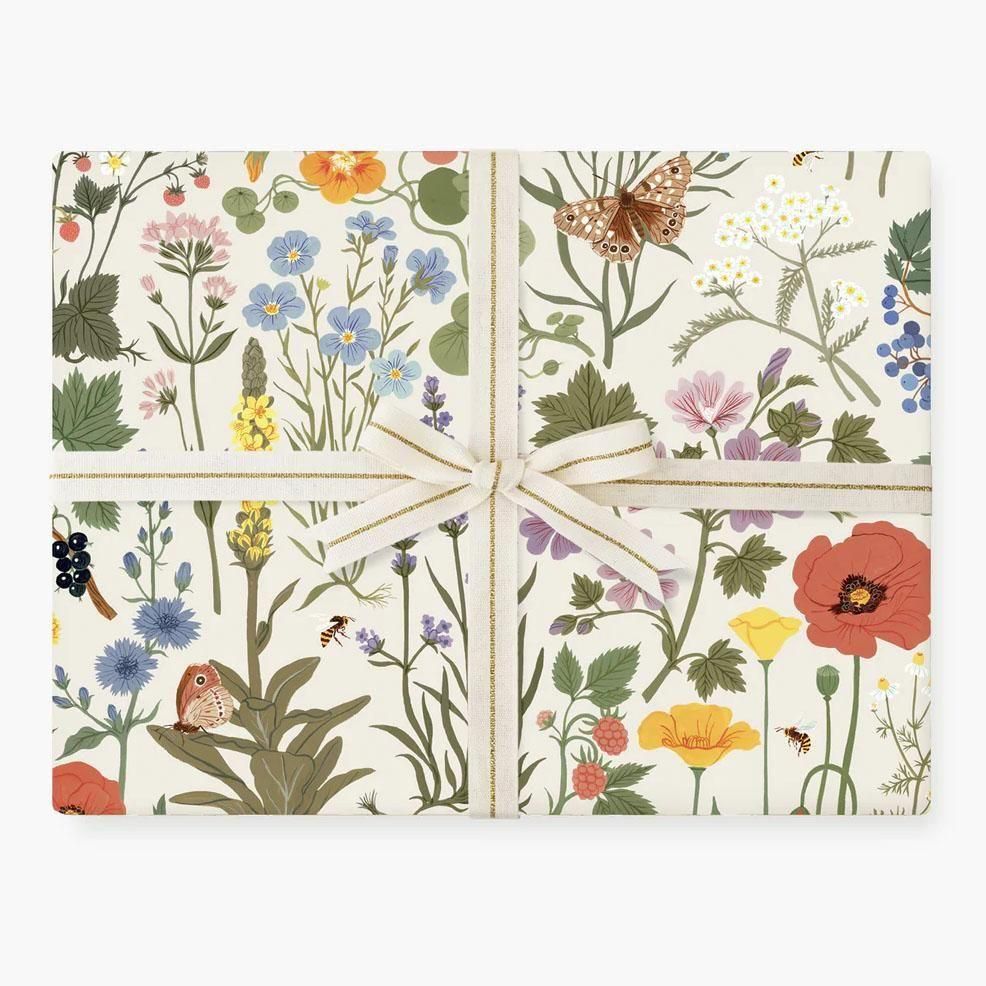 自然の中にある植物や花をモチーフに、やさしい色合いと繊細なタッチで描かれた美しい両面包装紙。