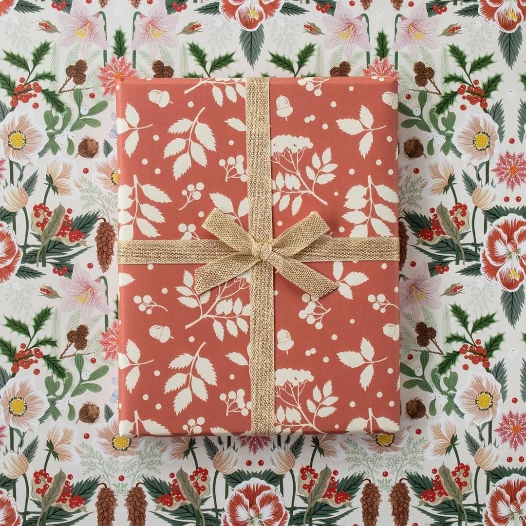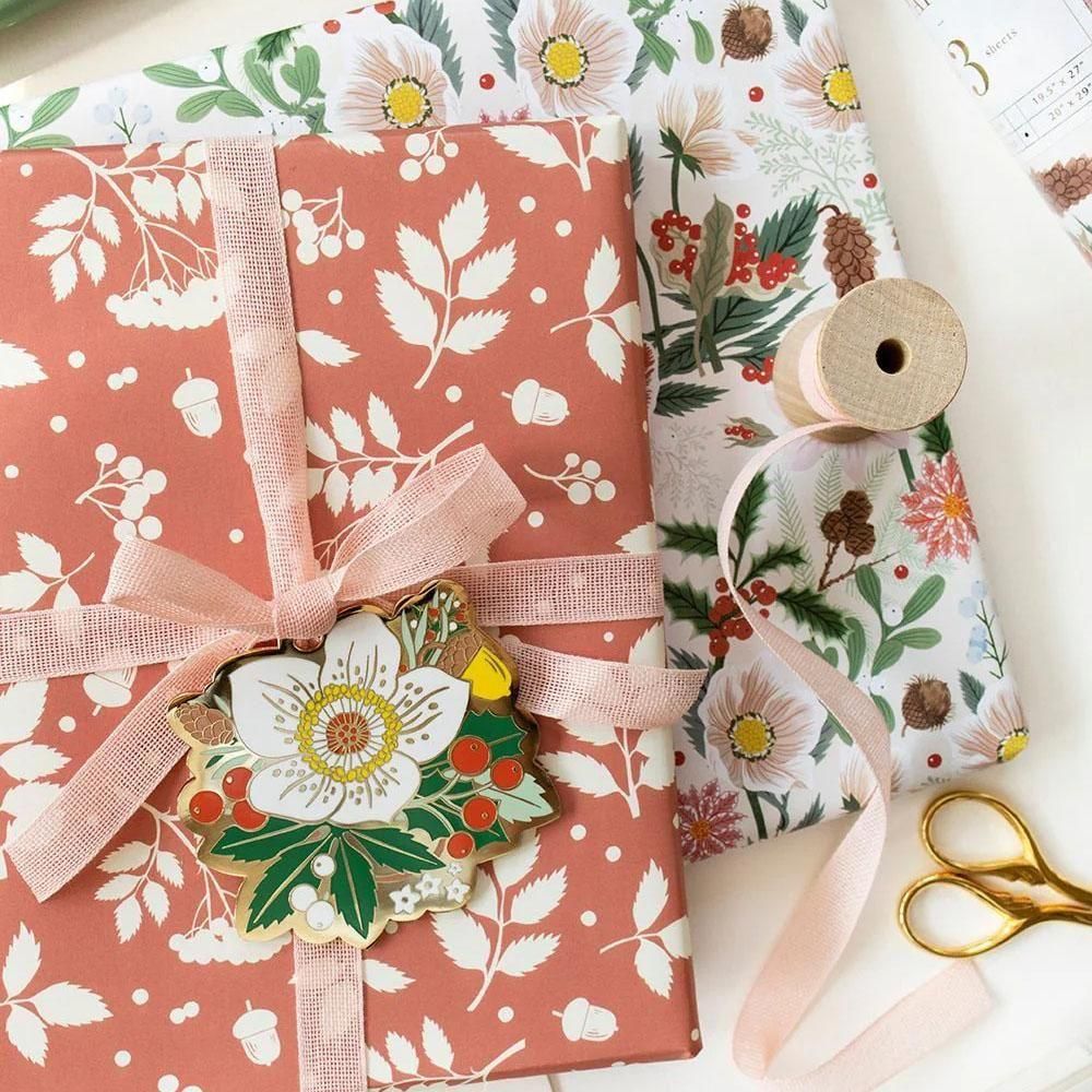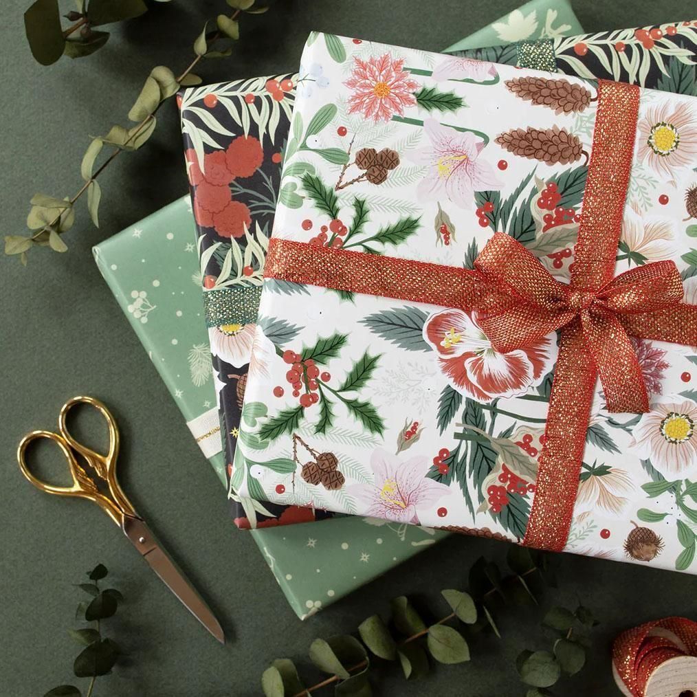 クリスマスローズ柄/ダブルサイド包装紙/ラッピングペーパー