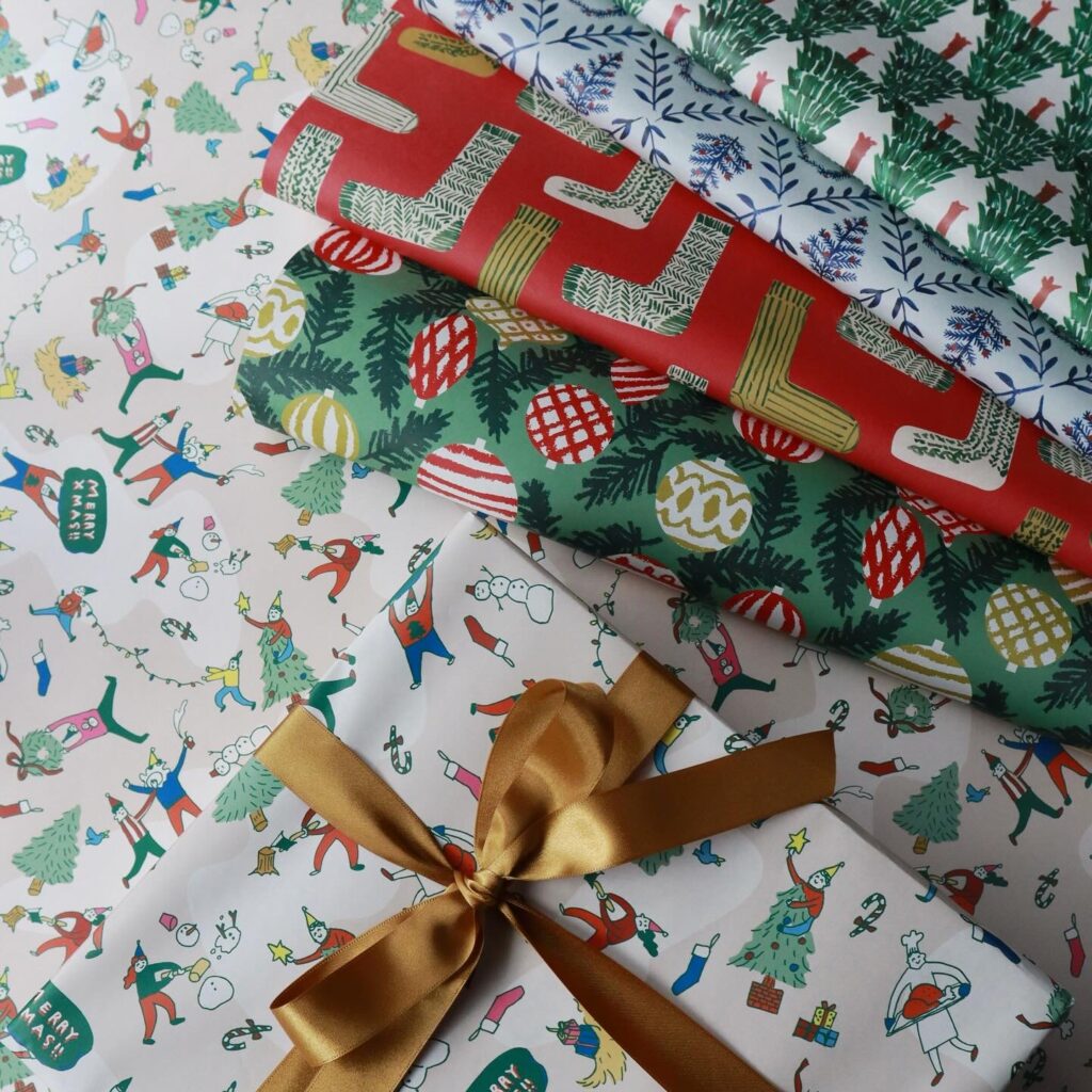 クリスマスをモチーフにした大判包装紙は今年で7種類になりました。